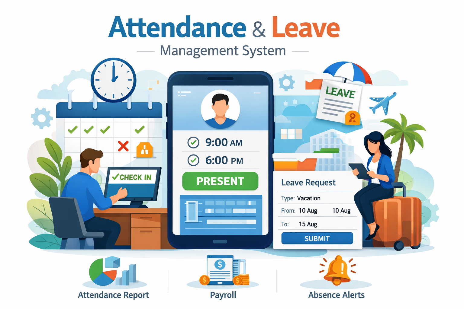 Traditional paper-based attendance systems are slow, error-prone, and insecure, often leading to inaccuracies, time theft, and limited visibility into workforce data. Modern organizations require smart, automated solutions to efficiently track attendance, manage leave, and gain real-time insights into employee availability and performance.